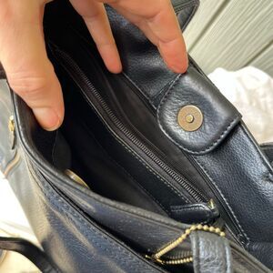 VTG Evan-Picone Black Leather Tote Bag Full Grain Brass Hang Tag Multi Pocket Pu