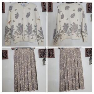 VTG Evan-Picone Petites Lambswool Angora Rabbit Paisley Cardigan Skirt 2pc Set☆M