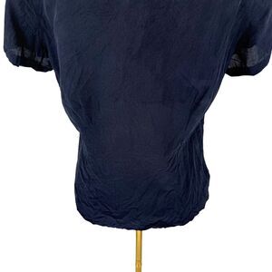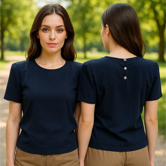 Evan Picone, Evan-Picone, silk blouse, silk top, blue blouse, blue silk blouse, round neck blouse, round neck top, shoulder pads blouse, shoulder pads top, boxy blouse, boxy top, vintage blouse, vintage top, 80s blouse, 80s top, women’s blouse, women’s top, dressy blouse, office blouse, work blouse, button shoulder blouse, button detail blouse, short sleeve blouse, puff sleeve blouse, retro blouse, elegant blouse, evening blouse, classic blouse, size 8 blouse, medium blouse, career blouse