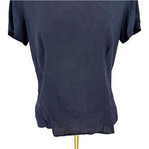 VTG Evan-Picone Silk Blouse Top Size 8 Blue Round Neck Button Shoulder Pads Boxy