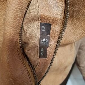 VTG Excelled Tan Genuine leather bomber jacket Distressed Zipper Pockets mens XL