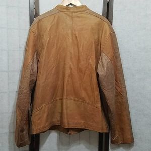 VTG Excelled Tan Genuine leather bomber jacket Distressed Zipper Pockets men's XL