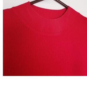 Exclusively Misook Classic RED Knit Sweater, Size XS; Material - 100% Acrylic; Care -Machine or Hand Wash; Made in Korea; Color Red, Short Sleeve, Shoulder Pads; Mock Turtle Neck, 6 inch Side Seam Slit, 2 inch Ribbing at Neck,