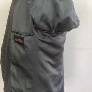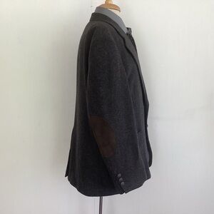 VTG Executive Collection Brown Gray Tweed Leather Button Suede Elbow Patch Coat