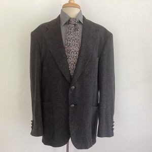 VTG Made in USA Executive Collection Brown Gray Bird’s eye Tweed With Gray Leather Buttons and Brown Suede Elbow Patches Mens Sport Coat Size 42S