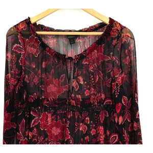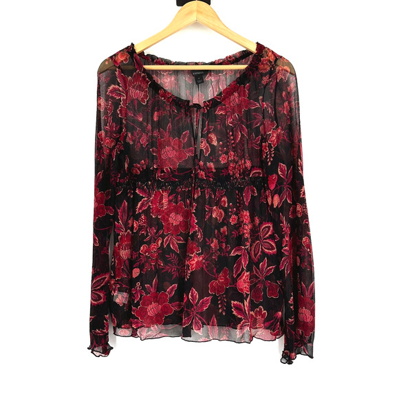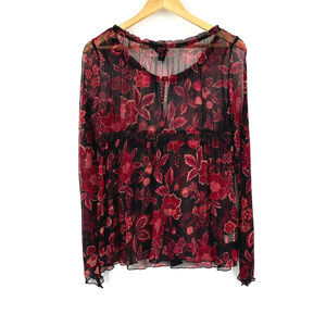 VTG Express 100% Silk Top Medium Babydoll Fairygrunge Sheer Dark Floral Whimsygoth Y2K Romantic