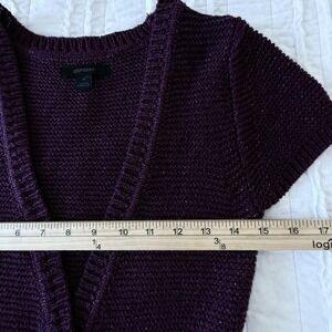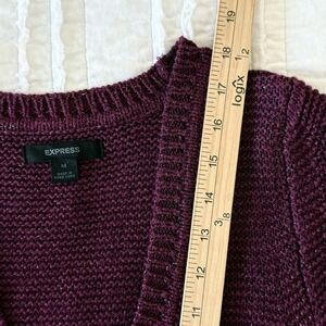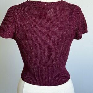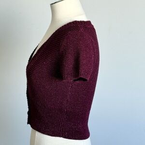 The VTG Express Cardigan Sweater is a stylish and retro addition to any woman's wardrobe. Made from cotton with a cable-knit fabric type, this burgundy cardigan features a V-neckline, short sleeves, and metallic accents for added sparkle. Perfect for a variety of occasions including travel, weddings, parties, and casual or business events, this vintage piece exudes a 90s grunge and Y2K vibe. The regular fit and size M make it a versatile and comfortable option for all seasons.