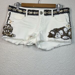 VTG Express Embellished Beaded Shorts Low Rise White Y2K Western Festival Size 4