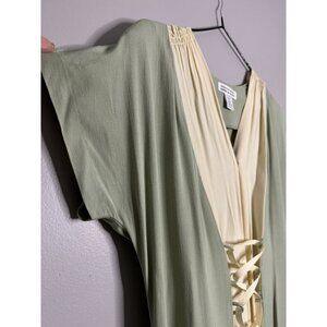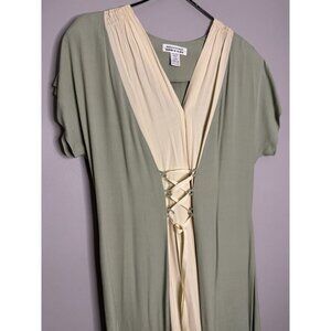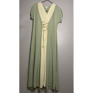 VTG Express Maxi Dress Womens Size 5/6 Sage Green Short Sleeve Tie Front Ballet