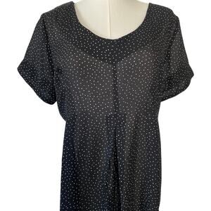 VTG Express One Piece Jumpsuit Wide Leg Y2K Sheer Black Polkadot Size Medium