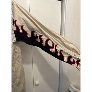 Cool shirt with flame graphics on sleeves and denim collar! Pit to pit measures 22”.