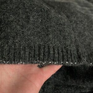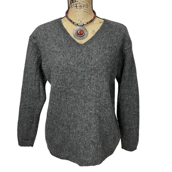 VTG Express Tricot Wool Sweater Grey V neck Size Small Large Ribbing