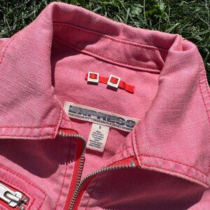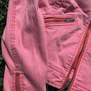Vintage Express Bright Pink Full Zip Denim Moto Jacket Size Small