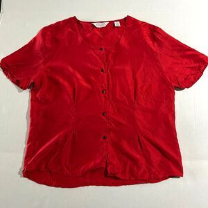 VTG Express, Women's SILK Cranberry Red Pleated Scoop Neck Button Down, sz L