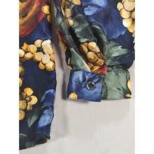 VTG Express Womens Silk Shirt S Fruit Print Long Sleeve Button Front Made Korea