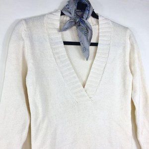 VTG FADED GLORY GIRLS VNECK CABLE KNIT CREME SWEATER XL 14/16