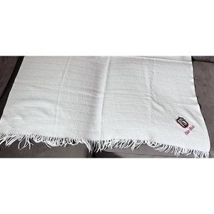 VTG FARIBO Wool Sports Blanket Tailgate Throw Ohio State Embroidery Cream EUC