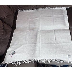 Listing is for a preowned item in excellent condition, has some piling most I've tried to remove most of them. No stains or holes. Length: 51" x 46" 60% Wool and 40% Acrylic made in the USA