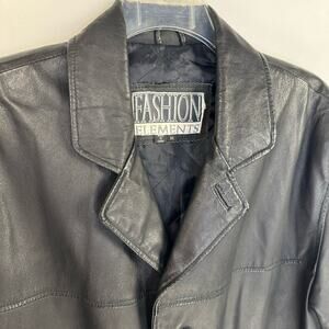 VTG FASHION ELEMENTS Black Classic 90s Leather Button Up Jacket Men's Medium