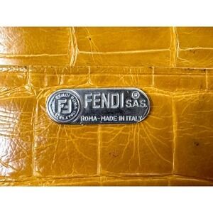 VTG FENDI SAS Bright Yellow Patent Crocodile Wallet Checkbook