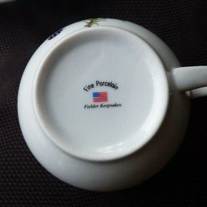 VTG FIELDER PORCELAIN TEAPOT AND CUP / SAUCER STACKED SET BERRY & FLORAL DESIGN