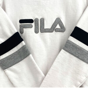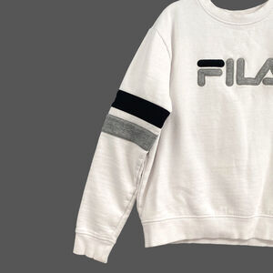 TITLE: VTG FILA Sweatshirt Lg Y2K White Spell Out Stripe Streetwear Retro Sport Hip hop
