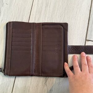 VTG FOSSIL Genuine Leather Wallet Brown BiFold w/ Snap & Zip