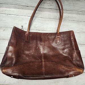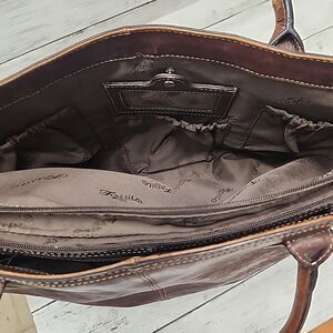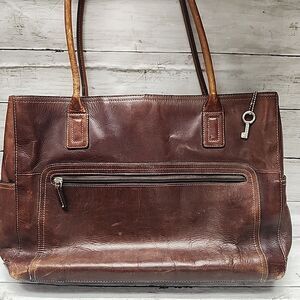 VTG FOSSIL Reissue Whiskey Brown/Cognac Leather Handbag Tote👜 Laptop Bag