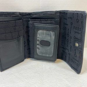 VTG FOSSIL Soft Black Cowhide Leather Trifold Stitched Wallet