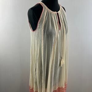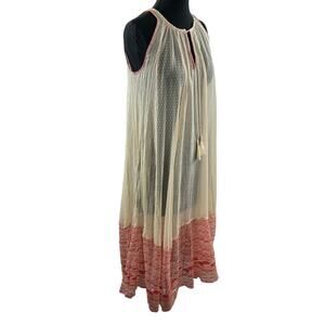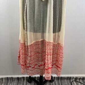 VTG FREE PEOPLE Beige Red Sheer Maxi Dress Tie Sleeveless Polka Dot Size S Small