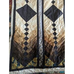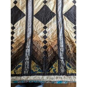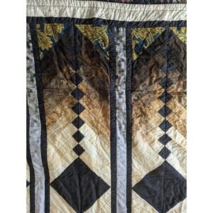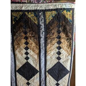 VTG FRENCH BRAID QUILT 1980s-90s Earthtone Ombre Batik Patchwork 67x70"