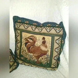 VTG FRENCH COUNTRY FARMHOUSE ROOSTERS DECORATIVE THROW PILLOWS TWO