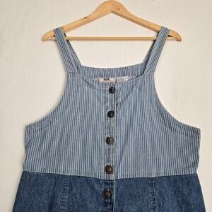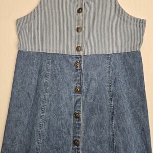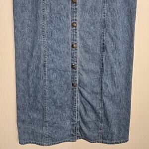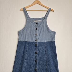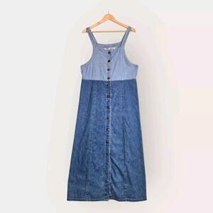 VTG Faded Glory Maxi Denim Dress Jumper Sz L Blue Button Front Pinstripe Prairie