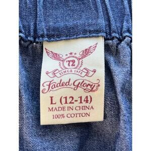 VTG Faded Glory Womens L 12/14 Blue Chambray Boat Neck Tie shoulders