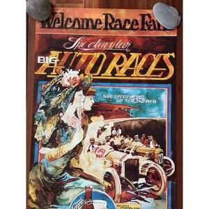 VTG Falstaff Beer Welcome Race Fans Poster St Louis Antique Auto Car READ