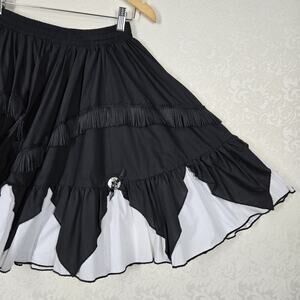 VTG Fancy Fashions Skirt S Black White Ruffle Fringe Square Dancing Rockabilly