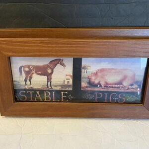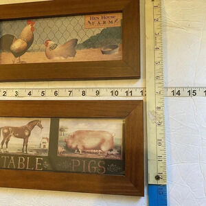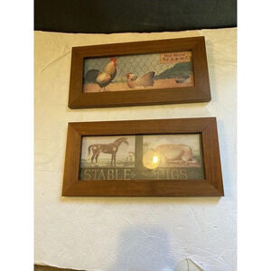 VTG Farm Animals Print Painting Wood Fram Farmhouse Wall Decor Hanging Set Of 2