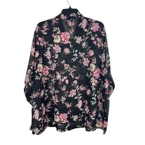 VTG Fashion Bug 30/32W Floral Blouse Black Pink Sheer Button Front Plus Size 4X