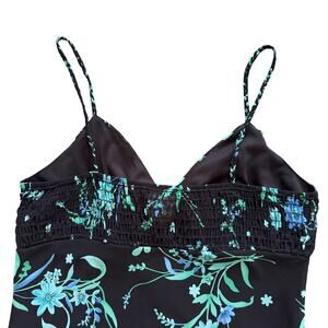 Beautiful flowing dress with blue and green floral print on black dress