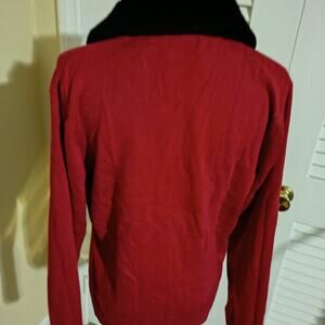 VTG Faux Fur Collar L Red Cardigan Sweater Kathie Lee Collection Cotton Blend