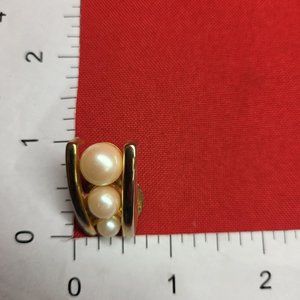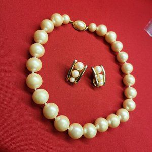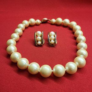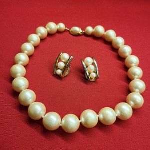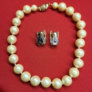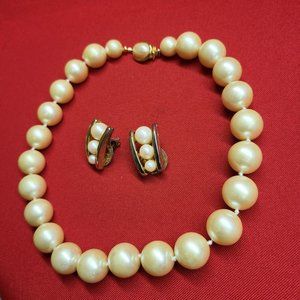 VTG Faux Gold Tone Pearl Choker Necklace & Clip on Earrings