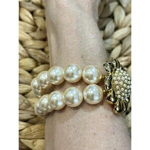 VTG Faux Pearl Bracelet Double Strand Gold Tone Flower Clasp Victorian Revival