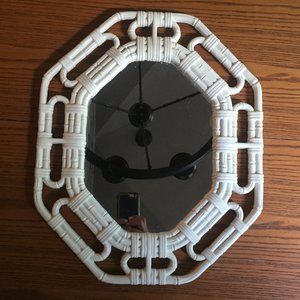 VTG Faux Wicker Mirror Shelf Sconces Set Homco Boho Plastic Wall Decor Dorm