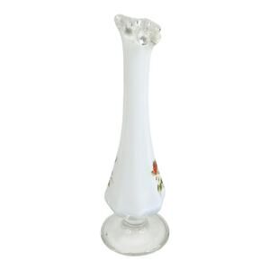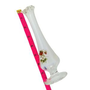 VTG Fenton Art Glass Flower BUD VASE 8” Signed Hand Painted Strawberry White