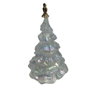 VTG Fenton Glass CHRISTMAS TREE 6.5" FIGURINE Large White Iridescent + Angel