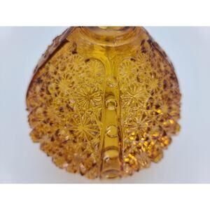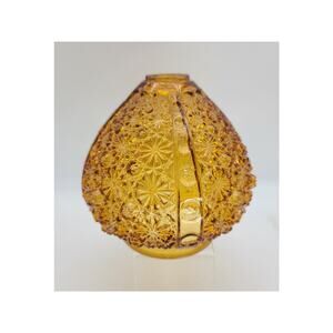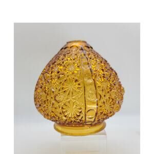 VTG Fenton for LE Smith Amber Daisy & Button Ribbed Glass Lamp Globe Only. Lamp Base Part. I believe Fenton made this lamp globe for LE Smith or it could be EAPG. The pattern is difficult to find a comparable. It would sit down into a lamp hardware base and lamp pole on the top. Very good condition with fleabites on the inside rim around top and bottom. No cracks, chips or scratches to the body. It has a cone shape with smooth ribs on 4 sides with graduating circles on the ribs. The piece measures 6" T x 5 1/2" at its widest. Top 1 1/2" with 3/4" opening; bottom 4" with 3 1/4" opening. Weight 1 lb. 5 oz.