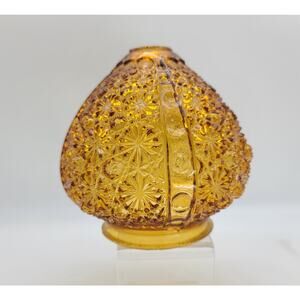 VTG Fenton LE Smith Amber Daisy Button Ribbed Glass Lamp Globe ONLY Base Part