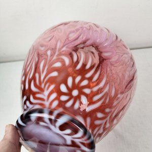 VTG Fenton Vase 11.5" Daisy & Fern Cranberry Opalescent Glass Ruffled White Pink