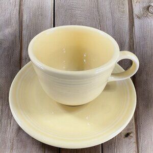 Fiesta Fiestaware Ceramic Teacup And Saucer Set Ivory Yellow Homer Laughlin VTG