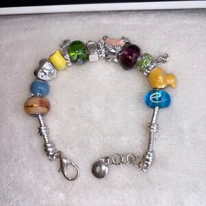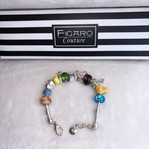 The bracelet has a silver-toned chain with a lobster clasp and an extension chain